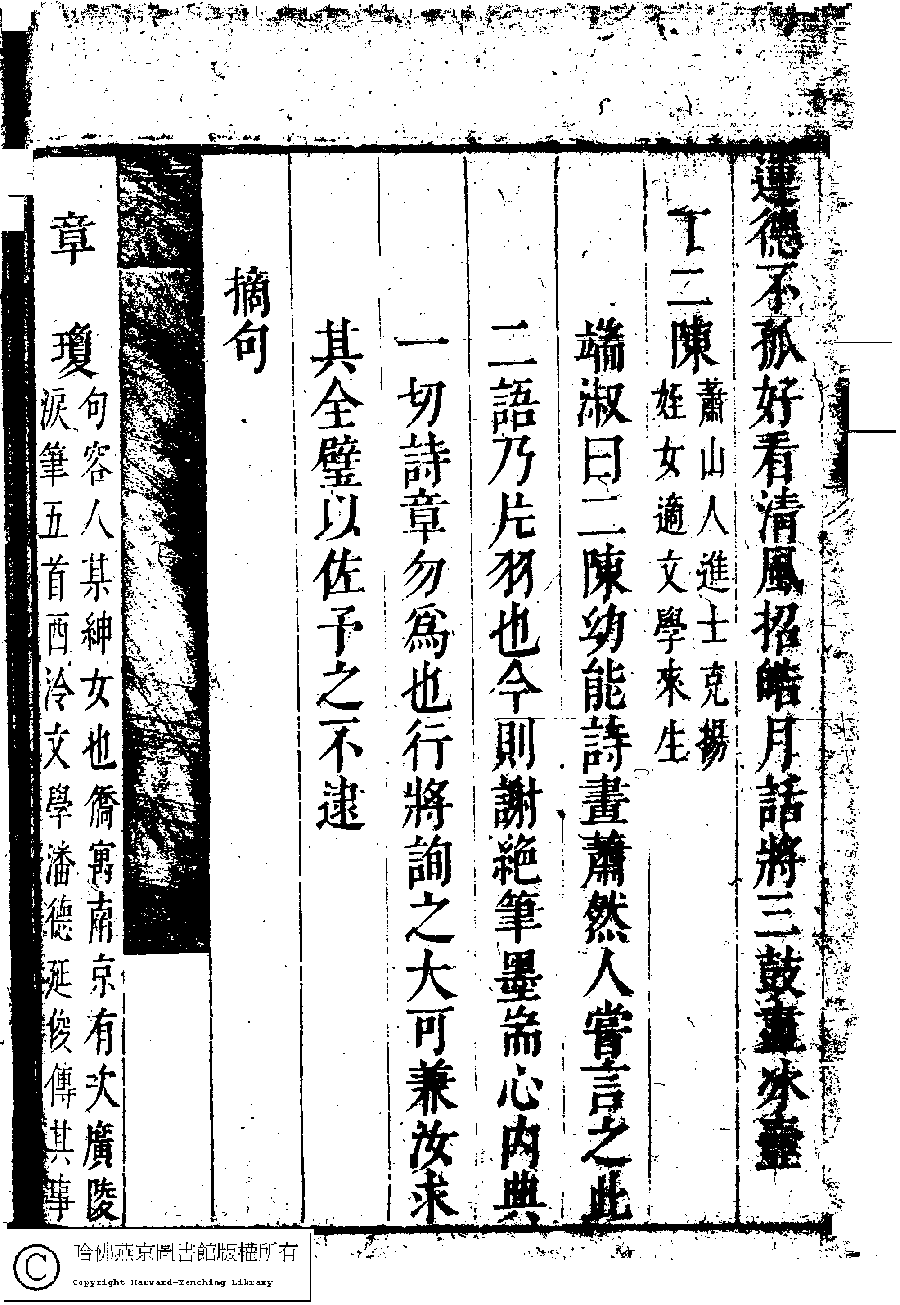 | (PRINT FRIENDLY VERSION) 名媛詩緯初編(清王端淑輯)。清康熙六年(1667)清音堂刻本 ![]() Page : 18.18b | click for larger image | Back |