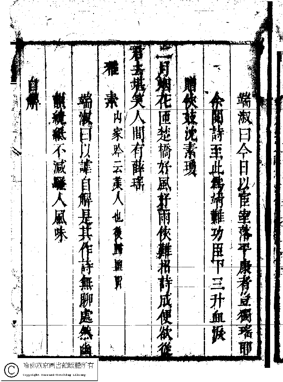 | (PRINT FRIENDLY VERSION) 名媛詩緯初編(清王端淑輯)。清康熙六年(1667)清音堂刻本 ![]() Page : 20.6a | click for larger image | Back |