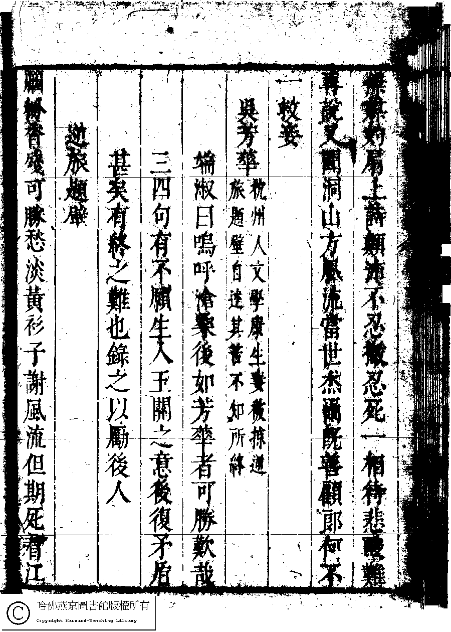 | (PRINT FRIENDLY VERSION) 名媛詩緯初編(清王端淑輯)。清康熙六年(1667)清音堂刻本 ![]() Page : 21.7b | click for larger image | Back |