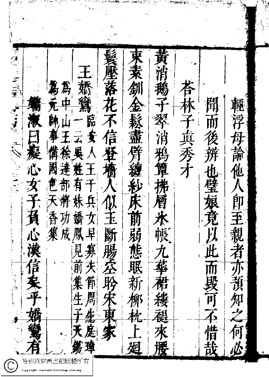 | (PRINT FRIENDLY VERSION) 名媛詩緯初編(清王端淑輯)。清康熙六年(1667)清音堂刻本 ![]() Page : 22.5a | click for larger image | 名媛詩緯初編(清王端淑輯)。清康熙六年(1667)清音堂刻本![]() Page : 22.4b | click for larger image | Back |