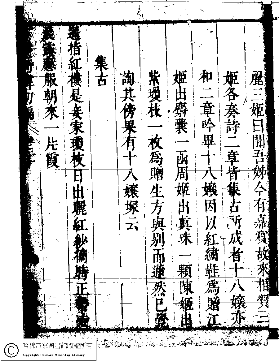 | (PRINT FRIENDLY VERSION) 名媛詩緯初編(清王端淑輯)。清康熙六年(1667)清音堂刻本 ![]() Page : 30.9a | click for larger image | 名媛詩緯初編(清王端淑輯)。清康熙六年(1667)清音堂刻本![]() Page : 30.8b | click for larger image | Back |