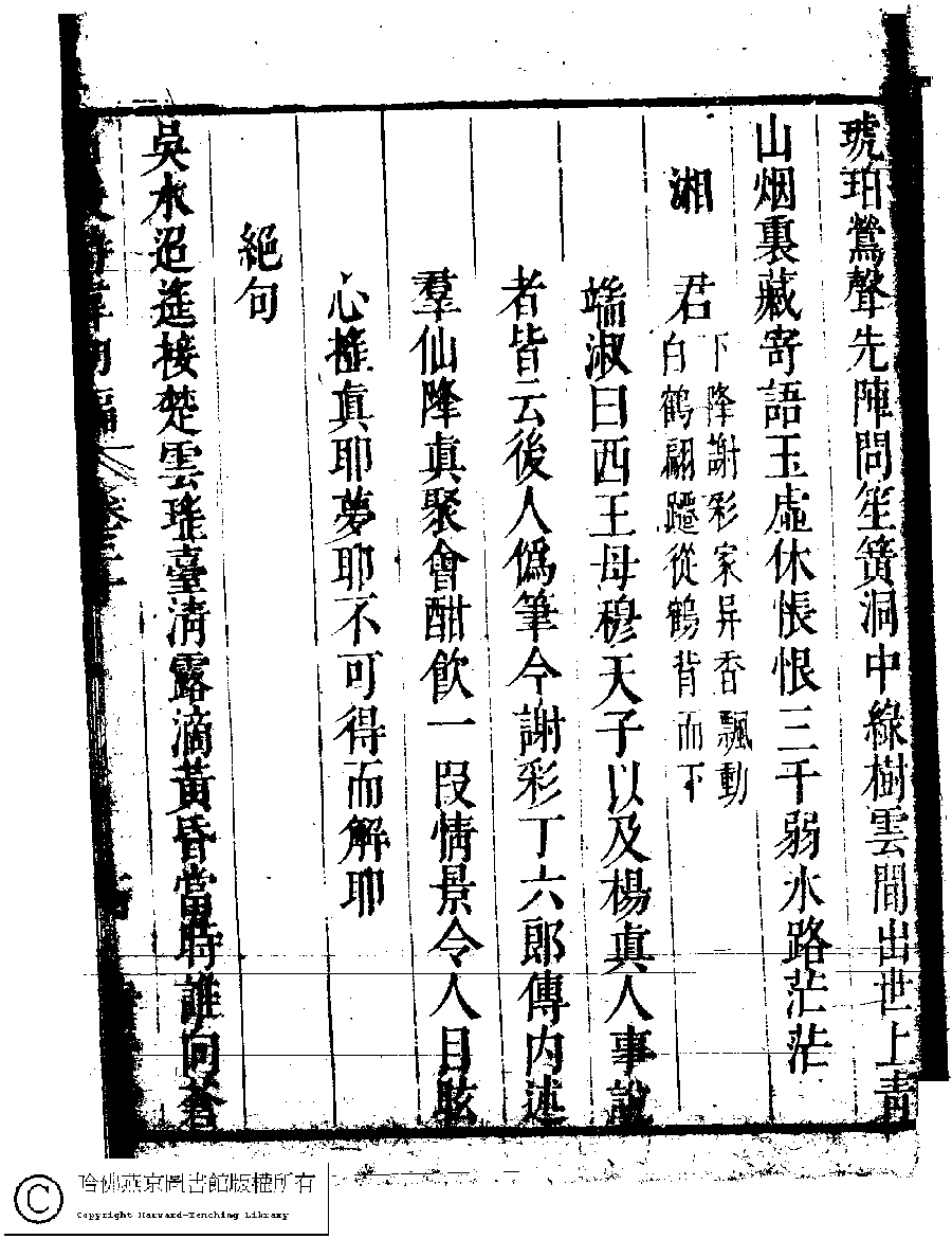 | (PRINT FRIENDLY VERSION) 名媛詩緯初編(清王端淑輯)。清康熙六年(1667)清音堂刻本 ![]() Page : 30.14a | click for larger image | Back |