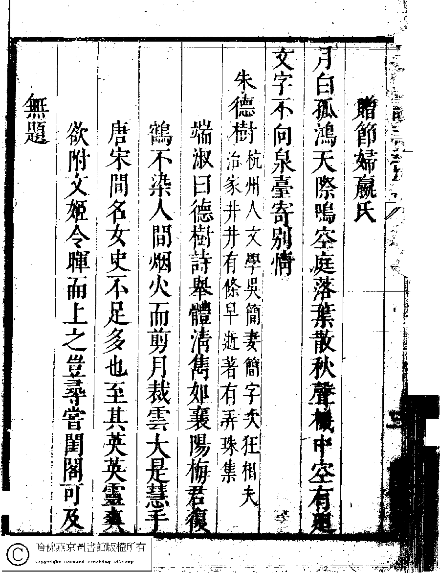 | (PRINT FRIENDLY VERSION) 名媛詩緯初編(清王端淑輯)。清康熙六年(1667)清音堂刻本 ![]() Page : 7.3b | click for larger image | Back |