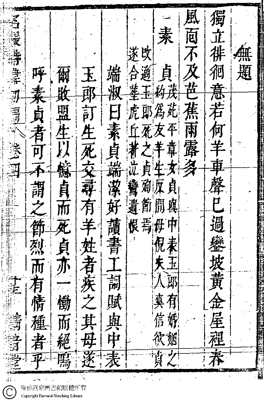 | (PRINT FRIENDLY VERSION) 名媛詩緯初編(清王端淑輯)。清康熙六年(1667)清音堂刻本 ![]() Page : 4.13a | click for larger image | Back |
