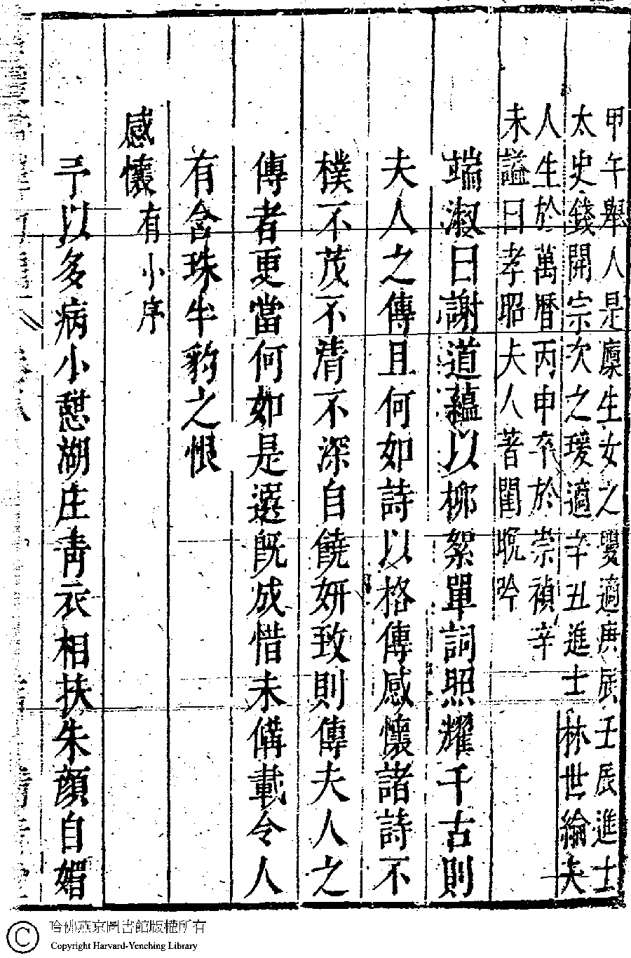 | (PRINT FRIENDLY VERSION) 名媛詩緯初編(清王端淑輯)。清康熙六年(1667)清音堂刻本 ![]() Page : 8.24a | click for larger image | Back |