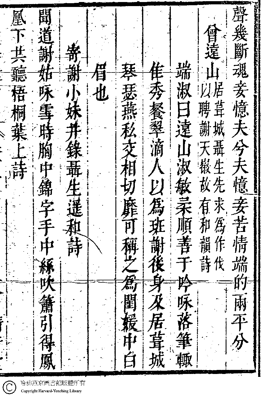 | (PRINT FRIENDLY VERSION) 名媛詩緯初編(清王端淑輯)。清康熙六年(1667)清音堂刻本 ![]() Page : 13.18a | click for larger image | Back |