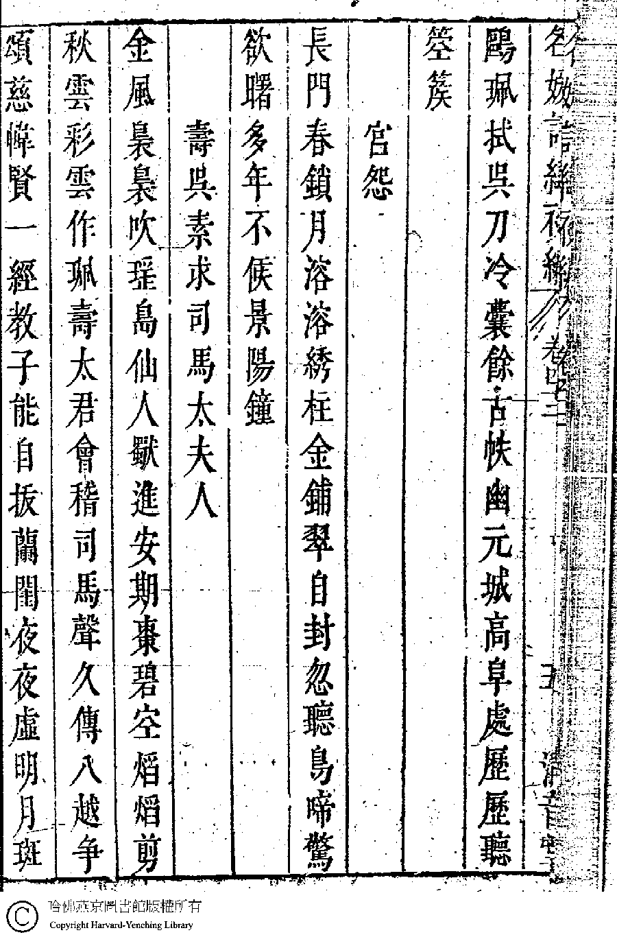 | (PRINT FRIENDLY VERSION) 名媛詩緯初編(清王端淑輯)。清康熙六年(1667)清音堂刻本 ![]() Page : 42.5b | click for larger image | Back |