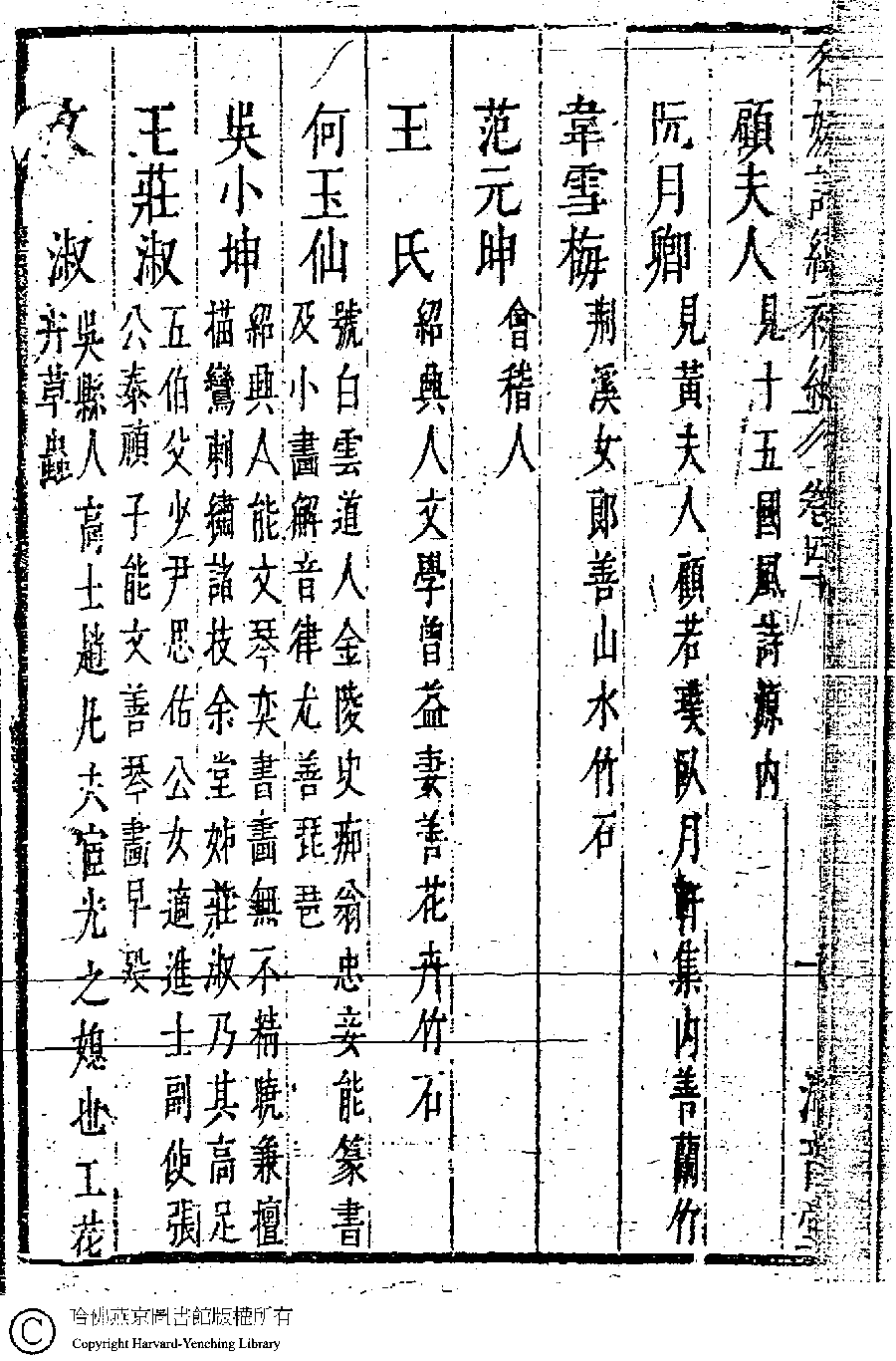 | (PRINT FRIENDLY VERSION) 名媛詩緯初編(清王端淑輯)。清康熙六年(1667)清音堂刻本 ![]() Page : 40.1b | click for larger image | Back |