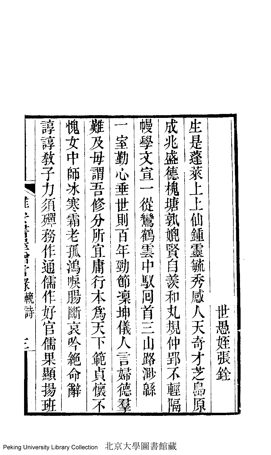 | (PRINT FRIENDLY VERSION) 雅安書屋文集﹕二卷(清汪嫈撰)。道光甲辰(1844)刊本 ![]() Page : 輓詩.3b | click for larger image | 雅安書屋文集﹕二卷(清汪嫈撰)。道光甲辰(1844)刊本![]() Page : 輓詩.3a | click for larger image | Back |