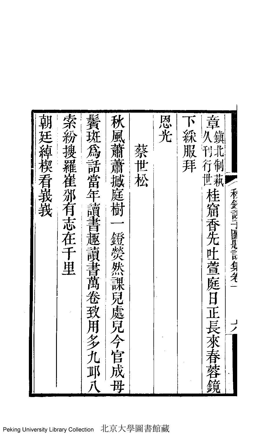 | (PRINT FRIENDLY VERSION) 雅安書屋文集﹕二卷(清汪嫈撰)。道光甲辰(1844)刊本 ![]() Page : 1.6b | click for larger image | 雅安書屋文集﹕二卷(清汪嫈撰)。道光甲辰(1844)刊本![]() Page : 1.6a | click for larger image | Back |