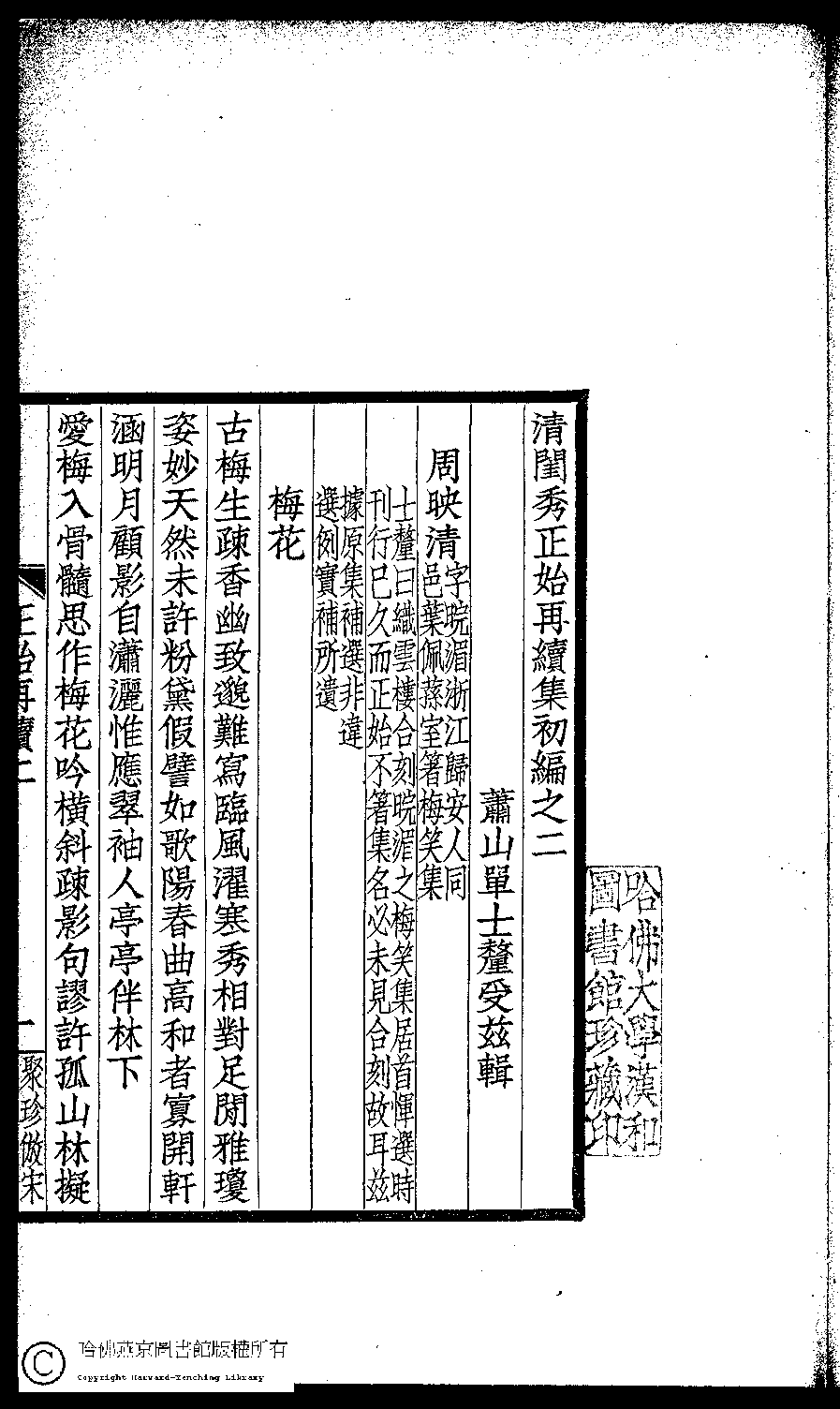 | (PRINT FRIENDLY VERSION) 閨秀正始再續集(民國單士釐輯)。民國元年(1911)活字印本 ![]() Page : 二.1a | click for larger image | Back |