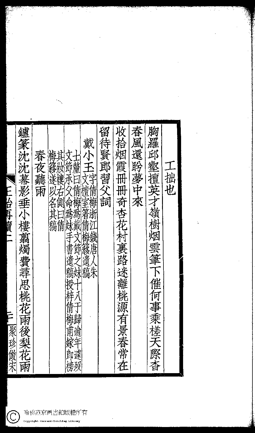 | (PRINT FRIENDLY VERSION) 閨秀正始再續集(民國單士釐輯)。民國元年(1911)活字印本 ![]() Page : 二.20a | click for larger image | Back |