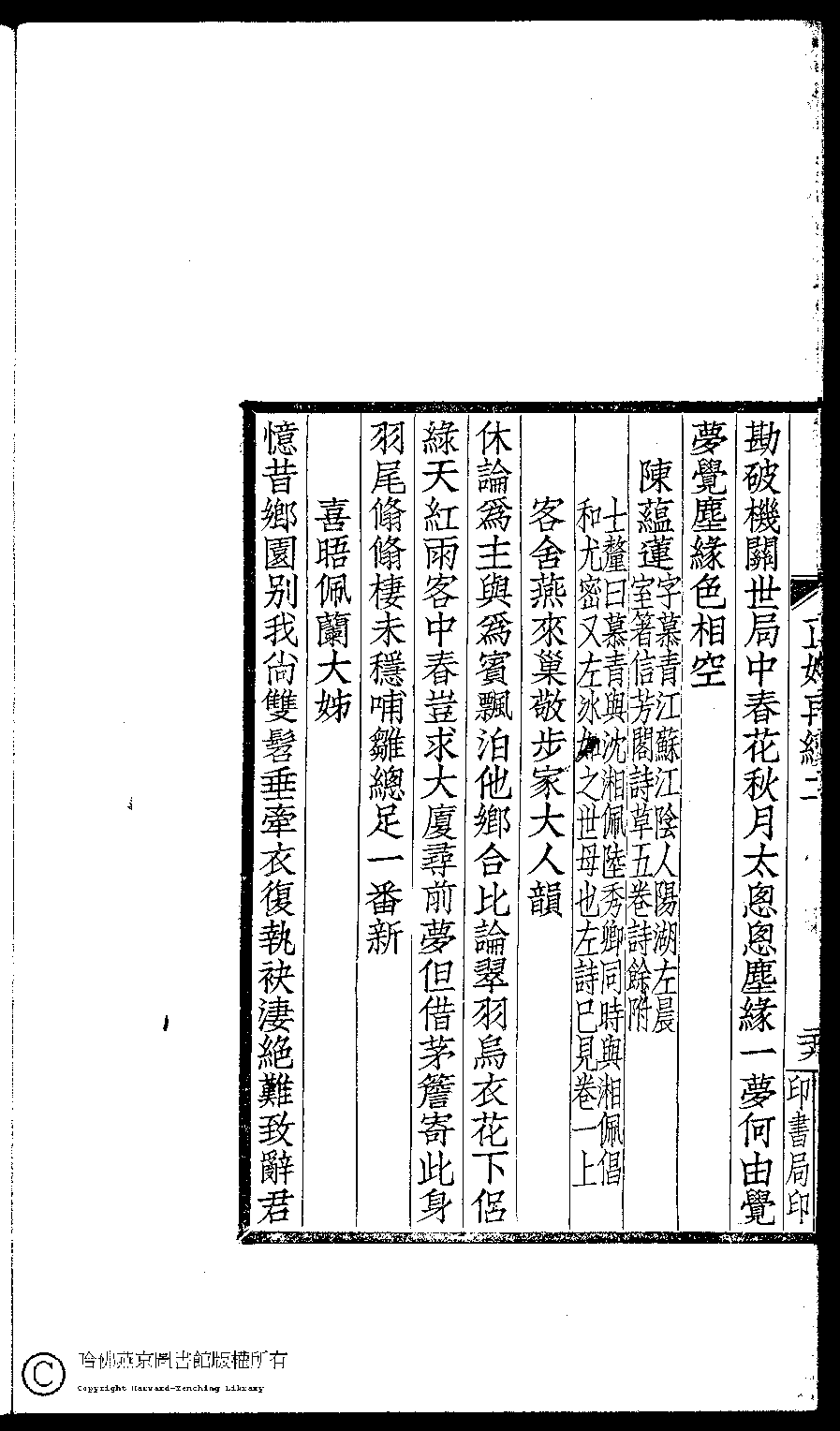 | (PRINT FRIENDLY VERSION) 閨秀正始再續集(民國單士釐輯)。民國元年(1911)活字印本 ![]() Page : 二.29b | click for larger image | Back |