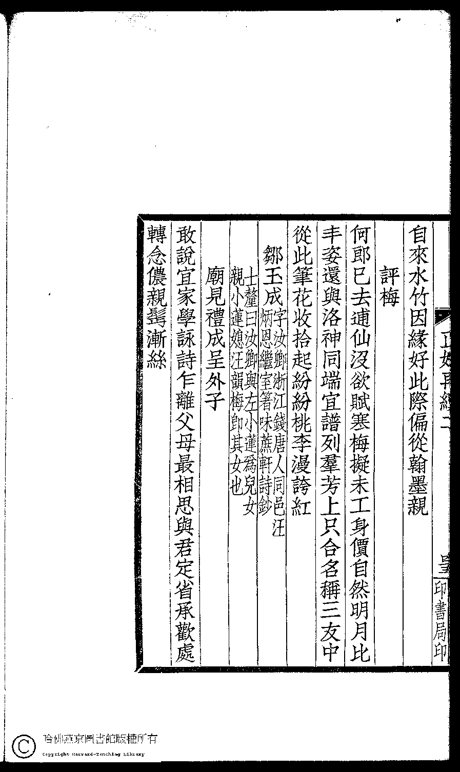 | (PRINT FRIENDLY VERSION) 閨秀正始再續集(民國單士釐輯)。民國元年(1911)活字印本 ![]() Page : 二.45b | click for larger image | 閨秀正始再續集(民國單士釐輯)。民國元年(1911)活字印本![]() Page : 二.45a | click for larger image | Back |
