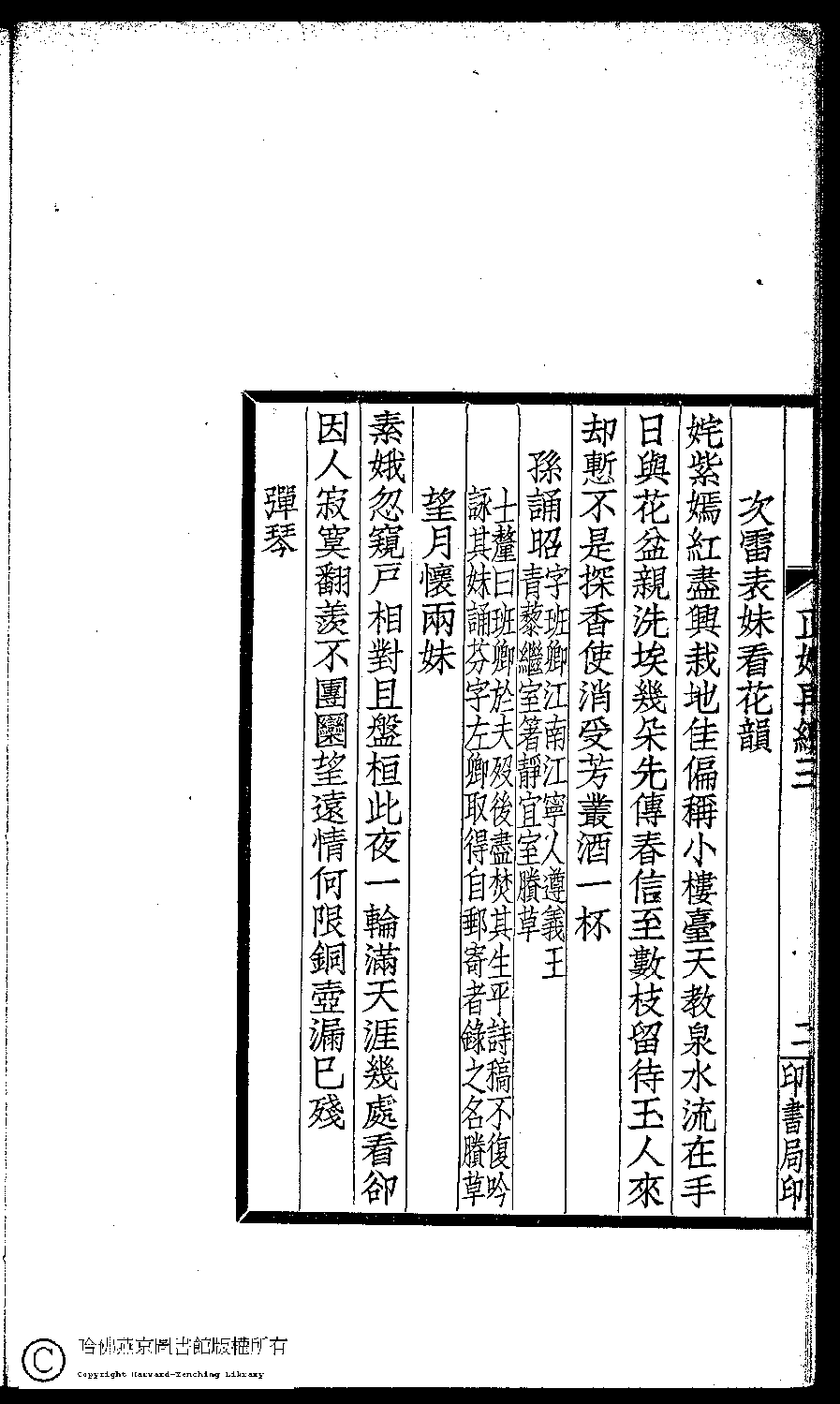 | (PRINT FRIENDLY VERSION) 閨秀正始再續集(民國單士釐輯)。民國元年(1911)活字印本 ![]() Page : 三.2b | click for larger image | Back |