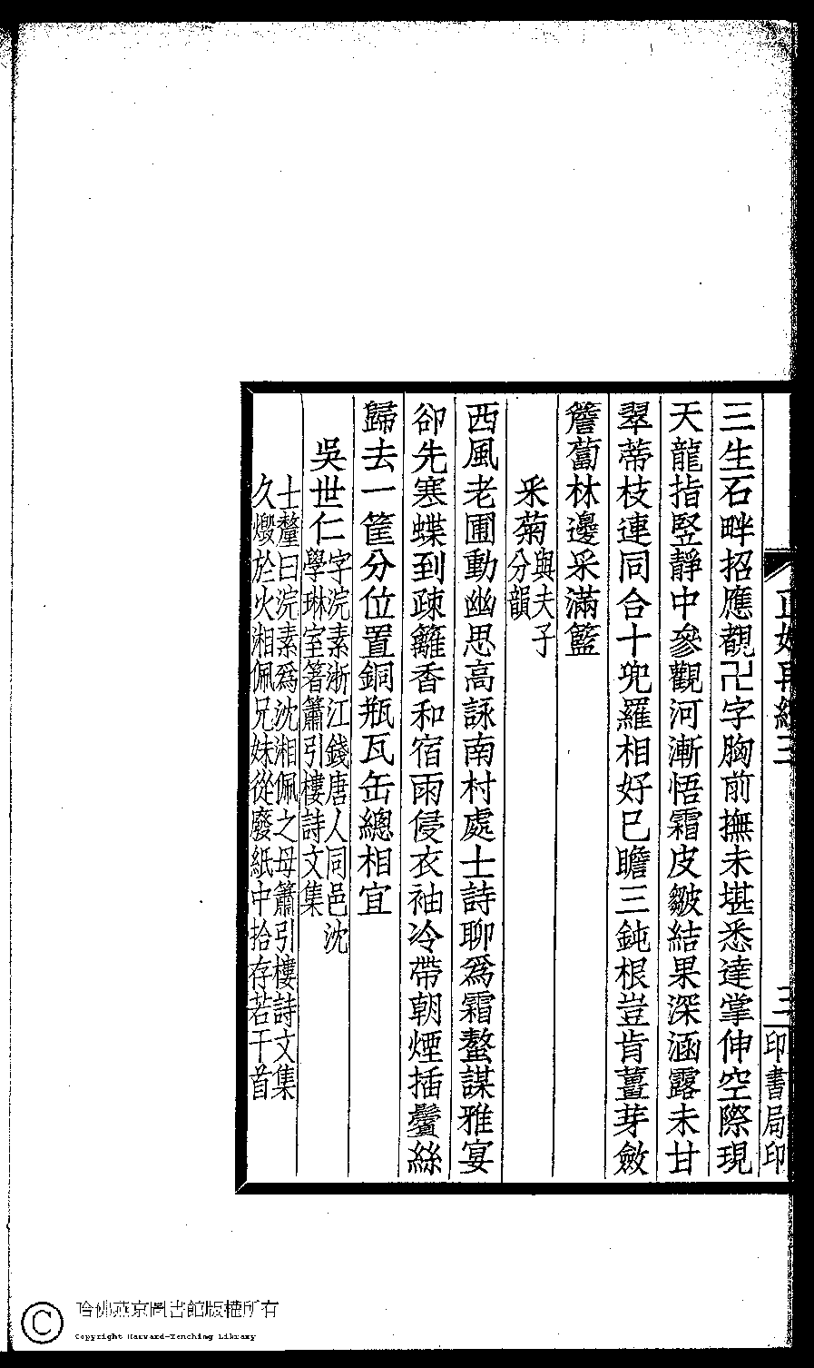 | (PRINT FRIENDLY VERSION) 閨秀正始再續集(民國單士釐輯)。民國元年(1911)活字印本 ![]() Page : 三.3b | click for larger image | Back |