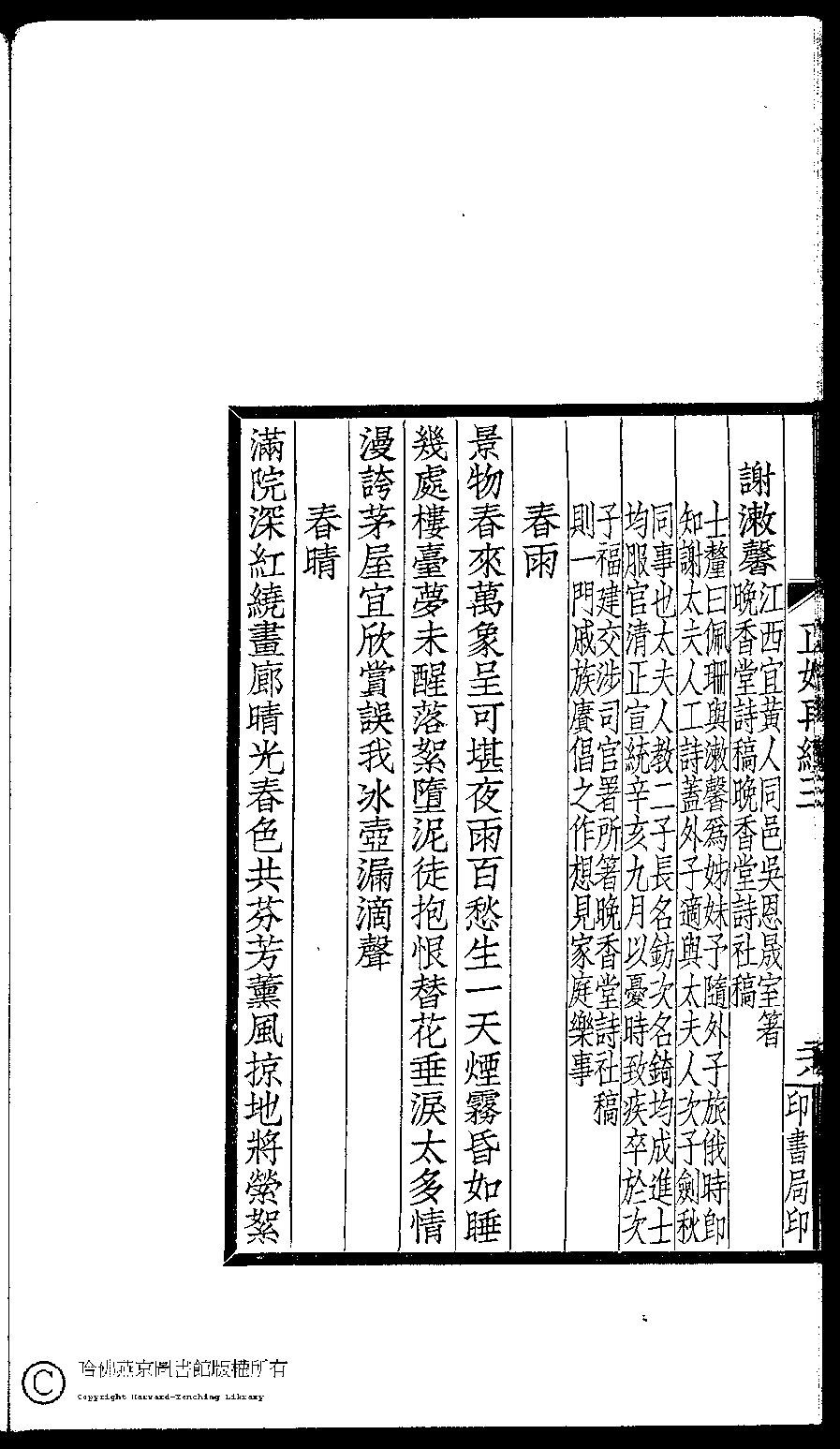 | (PRINT FRIENDLY VERSION) 閨秀正始再續集(民國單士釐輯)。民國元年(1911)活字印本 ![]() Page : 三.28b | click for larger image | Back |