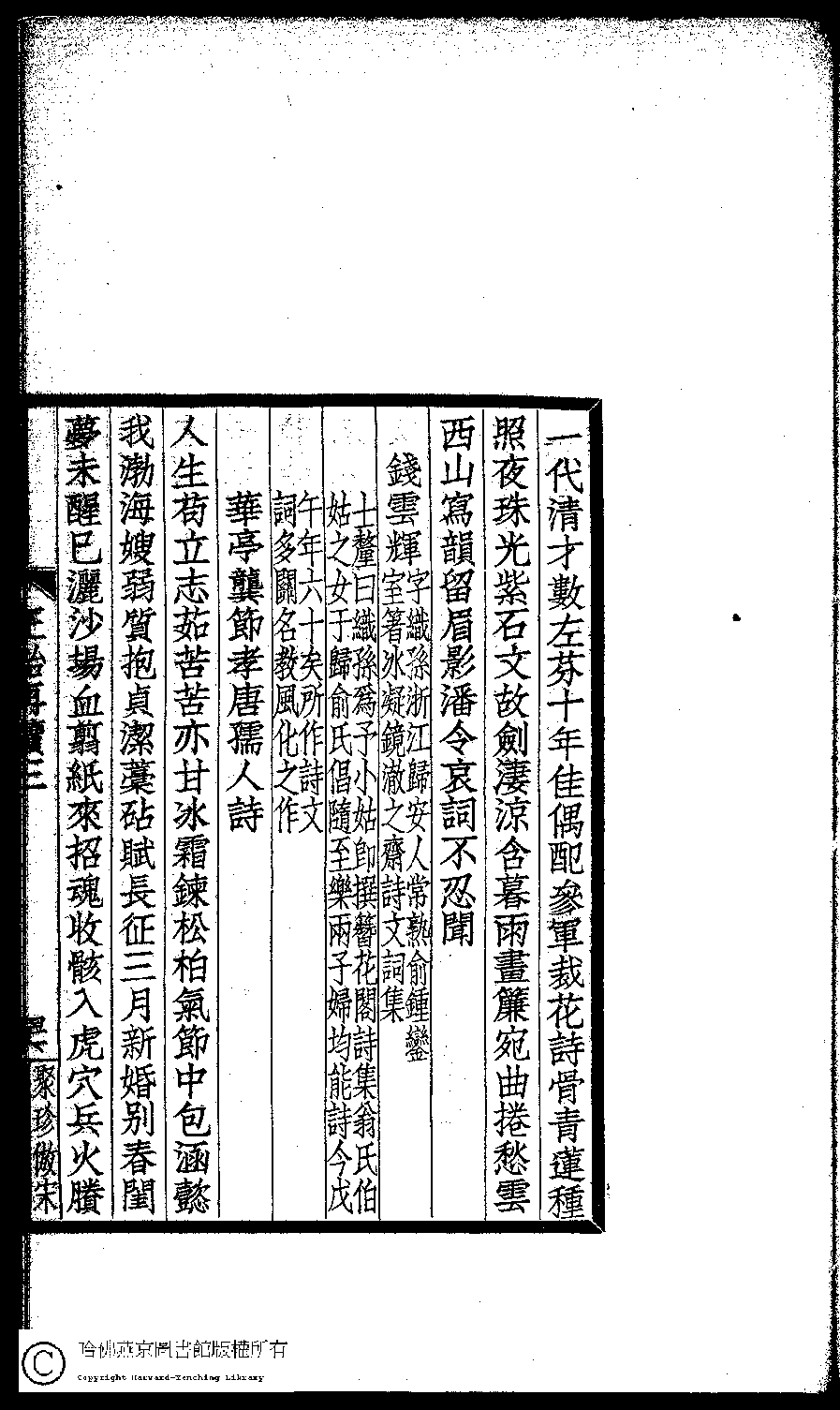 | (PRINT FRIENDLY VERSION) 閨秀正始再續集(民國單士釐輯)。民國元年(1911)活字印本 ![]() Page : 三.46a | click for larger image | Back |