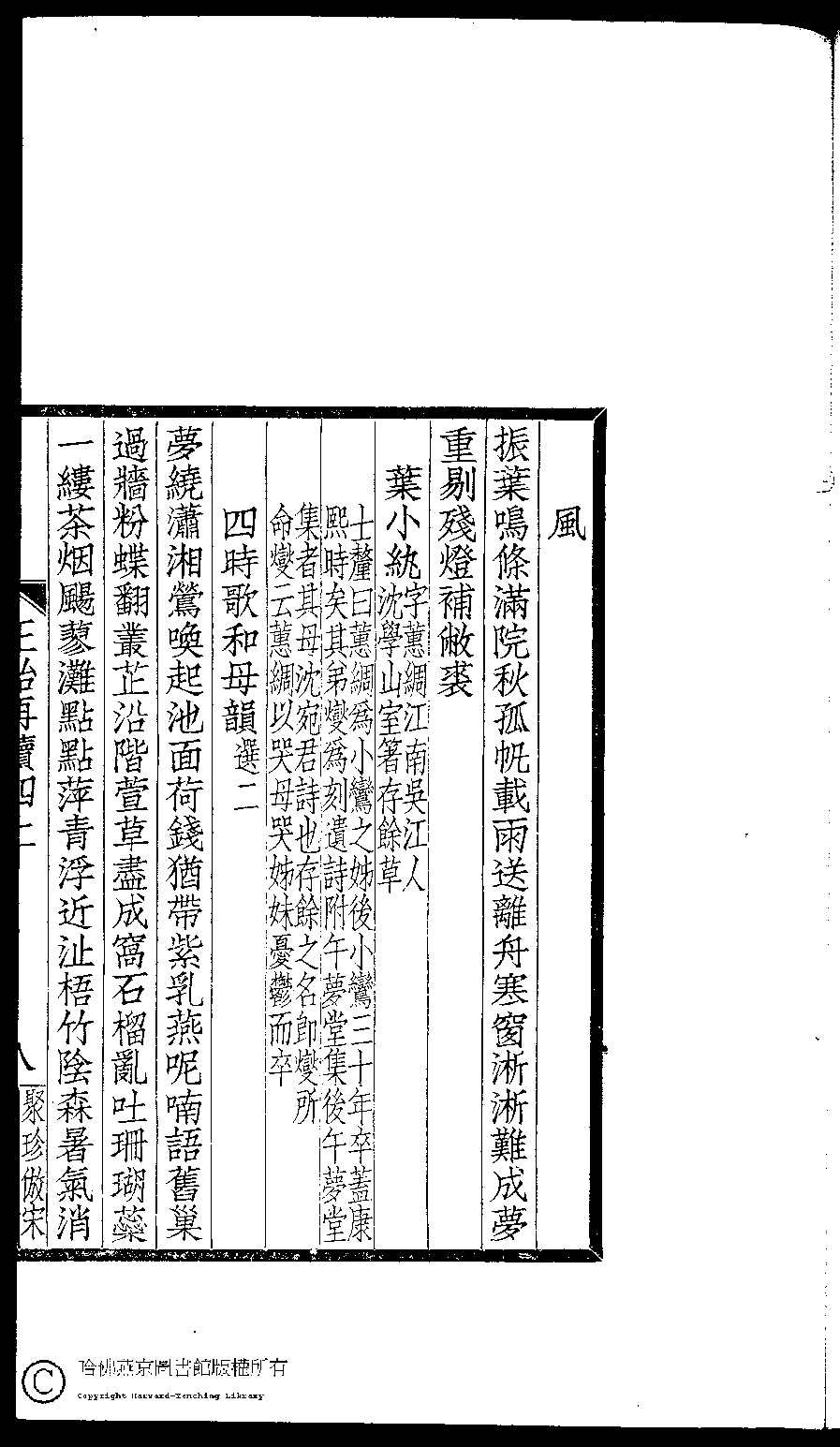 | (PRINT FRIENDLY VERSION) 閨秀正始再續集(民國單士釐輯)。民國元年(1911)活字印本 ![]() Page : 四上.8a | click for larger image | Back |
