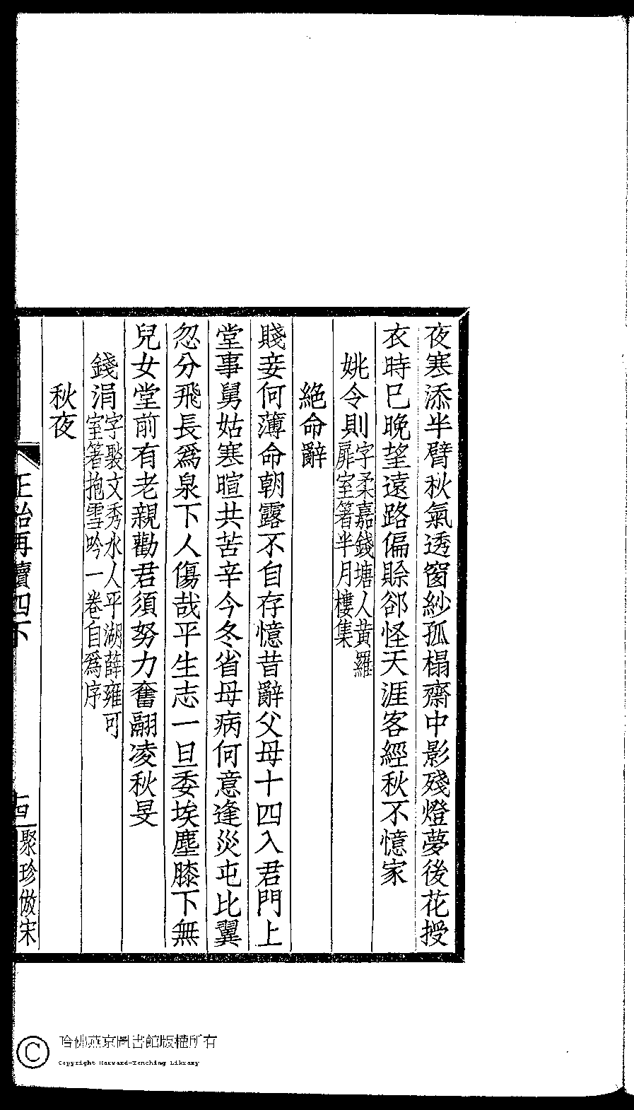 | (PRINT FRIENDLY VERSION) 閨秀正始再續集(民國單士釐輯)。民國元年(1911)活字印本 ![]() Page : 四下.14a | click for larger image | Back |