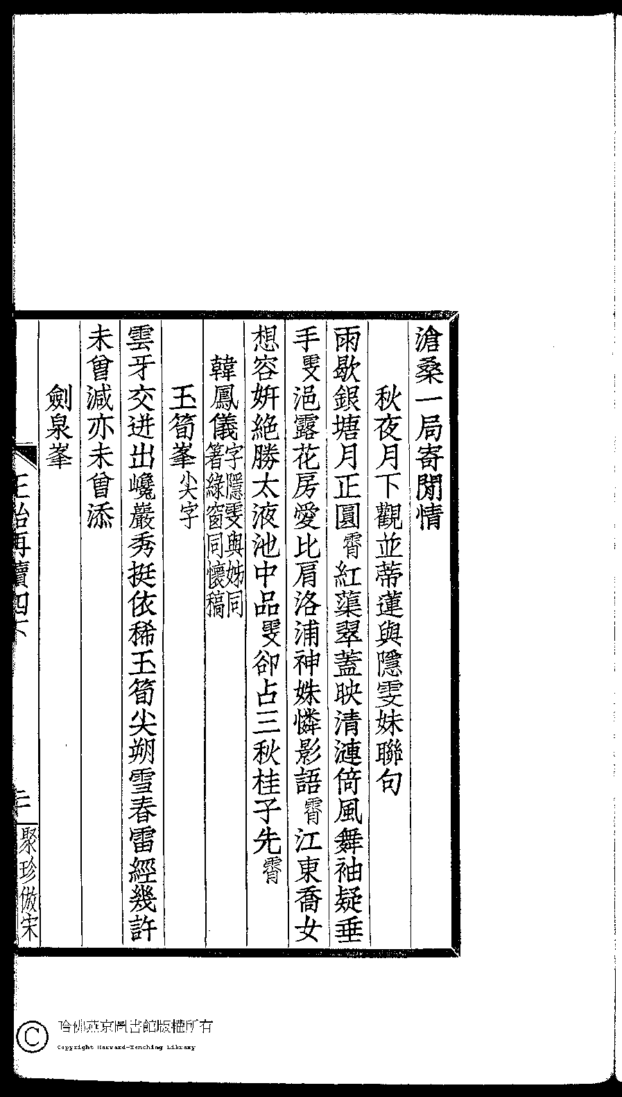 | (PRINT FRIENDLY VERSION) 閨秀正始再續集(民國單士釐輯)。民國元年(1911)活字印本 ![]() Page : 四下.20a | click for larger image | Back |