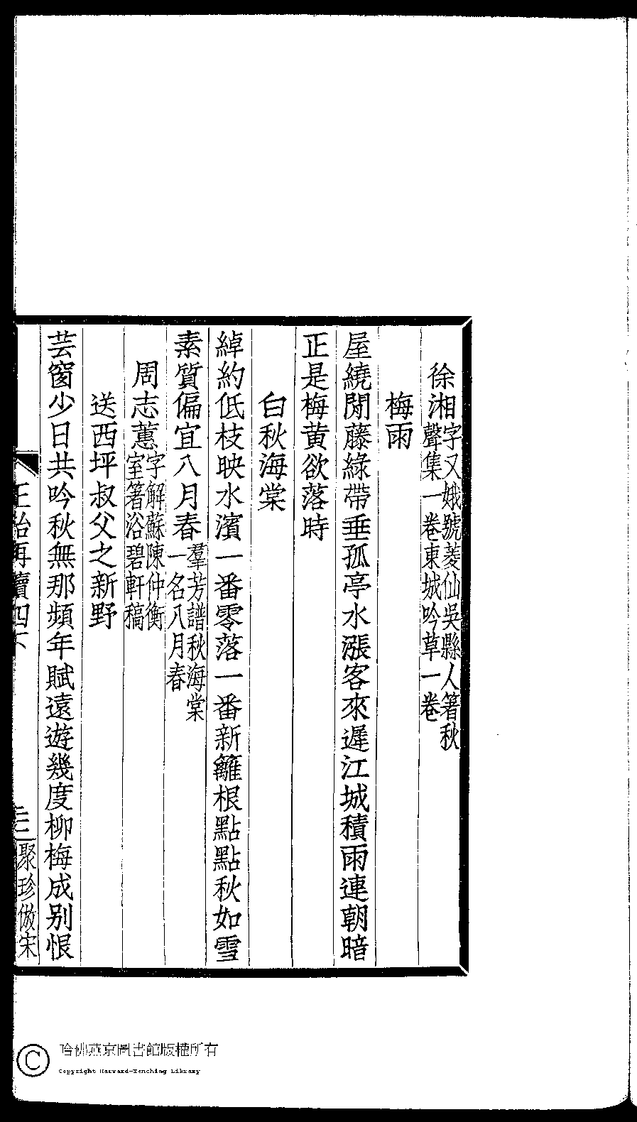 | (PRINT FRIENDLY VERSION) 閨秀正始再續集(民國單士釐輯)。民國元年(1911)活字印本 ![]() Page : 四下.21a | click for larger image | Back |
