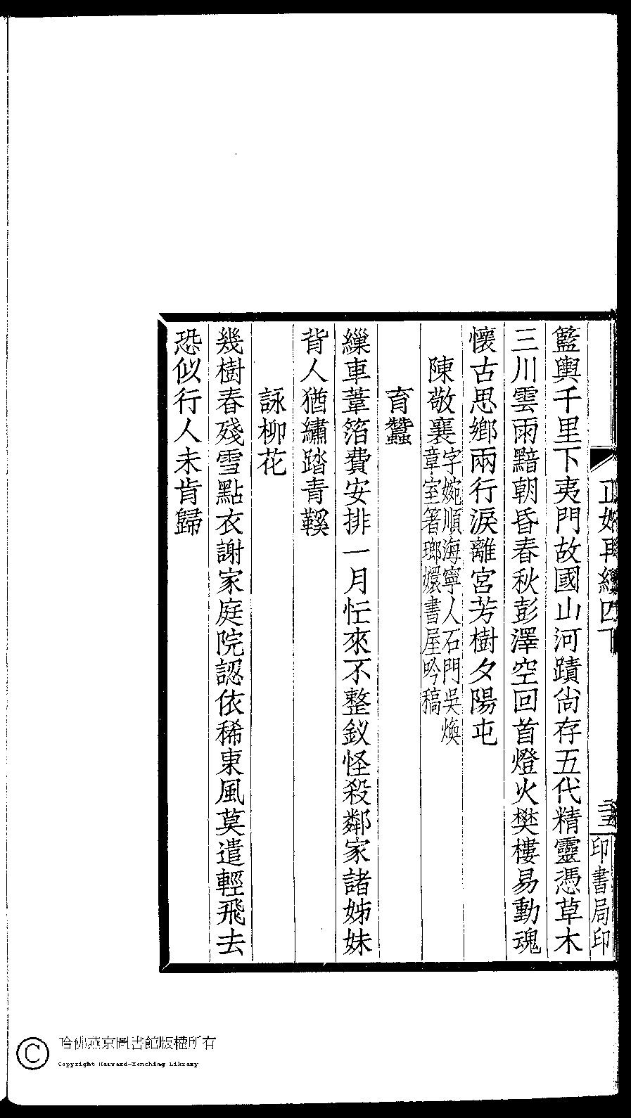 | (PRINT FRIENDLY VERSION) 閨秀正始再續集(民國單士釐輯)。民國元年(1911)活字印本 ![]() Page : 四下.25b | click for larger image | Back |