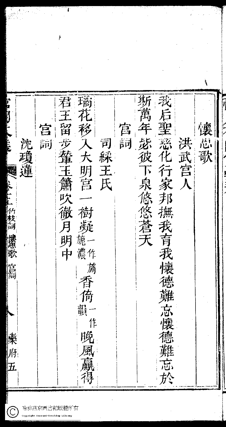 | (PRINT FRIENDLY VERSION) 宮閨文選:二十六卷,姓氏小錄 : 一卷(清周壽昌輯訂)。道光二十六年(1846)開雕 ![]() Page : 15.8a | click for larger image | Back |