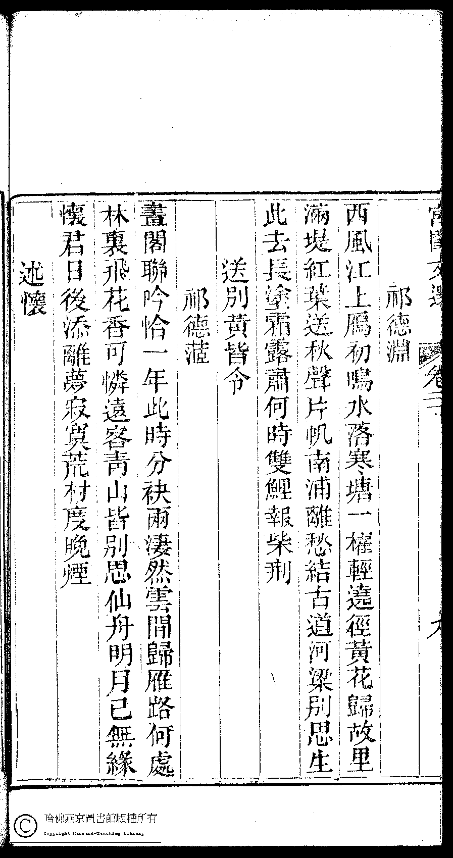 | (PRINT FRIENDLY VERSION) 宮閨文選:二十六卷,姓氏小錄 : 一卷(清周壽昌輯訂)。道光二十六年(1846)開雕 ![]() Page : 20.9b | click for larger image | 宮閨文選:二十六卷,姓氏小錄 : 一卷(清周壽昌輯訂)。道光二十六年(1846)開雕![]() Page : 20.9a | click for larger image | Back |