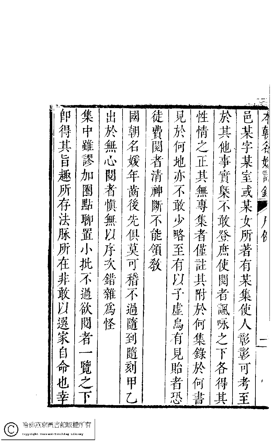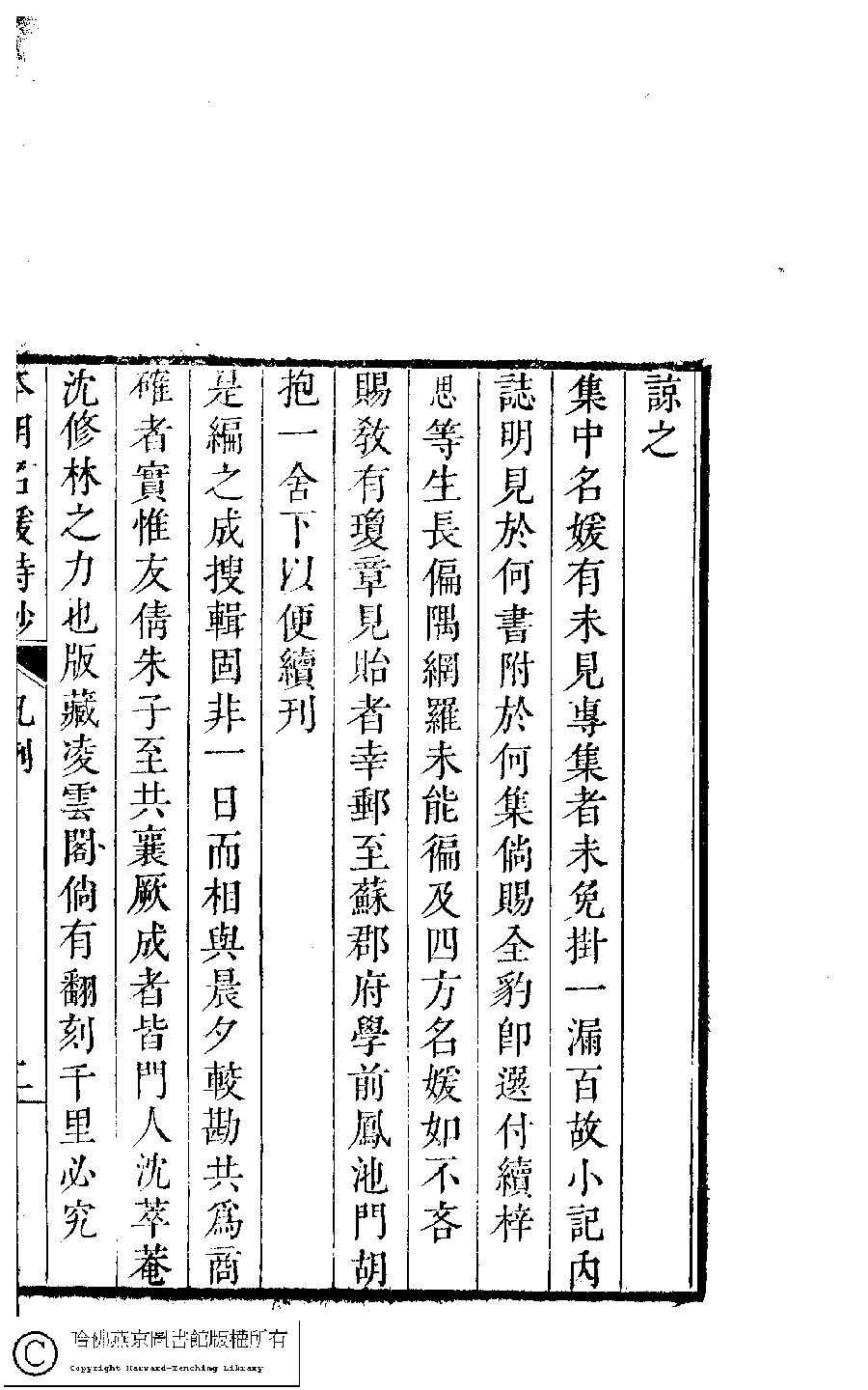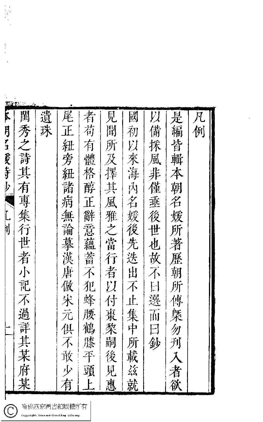| (PRINT FRIENDLY VERSION) 本朝名媛詩鈔﹕六卷(清胡孝思輯)。清康熙五十五年(1716)凌雲閣刻本 ![]() Page : 凡例.2b | click for larger image | 本朝名媛詩鈔﹕六卷(清胡孝思輯)。清康熙五十五年(1716)凌雲閣刻本![]() Page : 凡例.2a | click for larger image | 本朝名媛詩鈔﹕六卷(清胡孝思輯)。清康熙五十五年(1716)凌雲閣刻本![]() Page : 凡例.1b | click for larger image | 本朝名媛詩鈔﹕六卷(清胡孝思輯)。清康熙五十五年(1716)凌雲閣刻本![]() Page : 凡例.1a | click for larger image | Back |