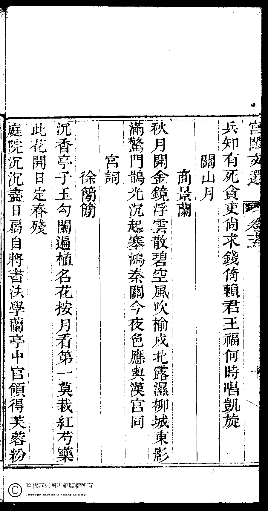 | (PRINT FRIENDLY VERSION) 宮閨文選:二十六卷,姓氏小錄 : 一卷(清周壽昌輯訂)。道光二十六年(1846)開雕 ![]() Page : 15.10b | click for larger image | Back |