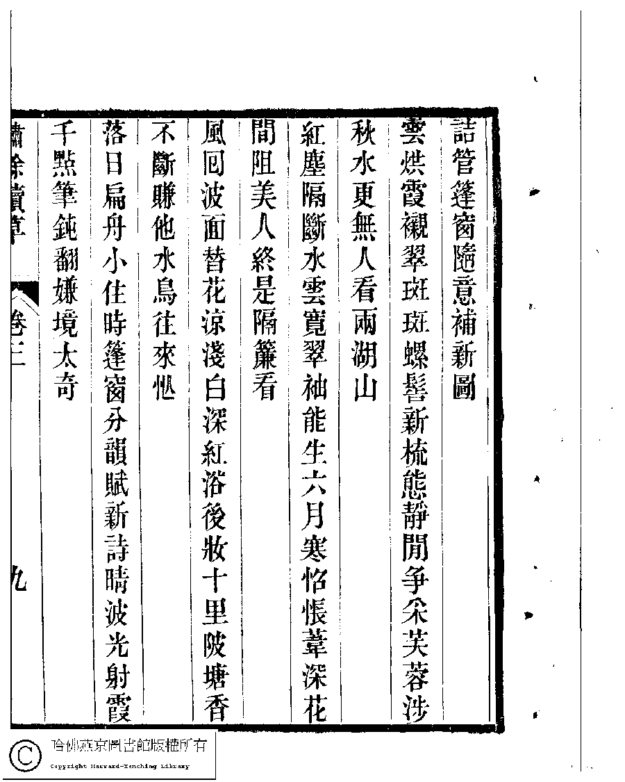 | (PRINT FRIENDLY VERSION) 繡餘續草﹕五卷(清歸懋儀撰)。清道光十二年 (1832)刻本 ![]() Page : 3.9b | click for larger image | 繡餘續草﹕五卷(清歸懋儀撰)。清道光十二年 (1832)刻本![]() Page : 3.9a | click for larger image | 繡餘續草﹕五卷(清歸懋儀撰)。清道光十二年 (1832)刻本![]() Page : 3.8b | click for larger image | 繡餘續草﹕五卷(清歸懋儀撰)。清道光十二年 (1832)刻本![]() Page : 3.8a | click for larger image | Back |