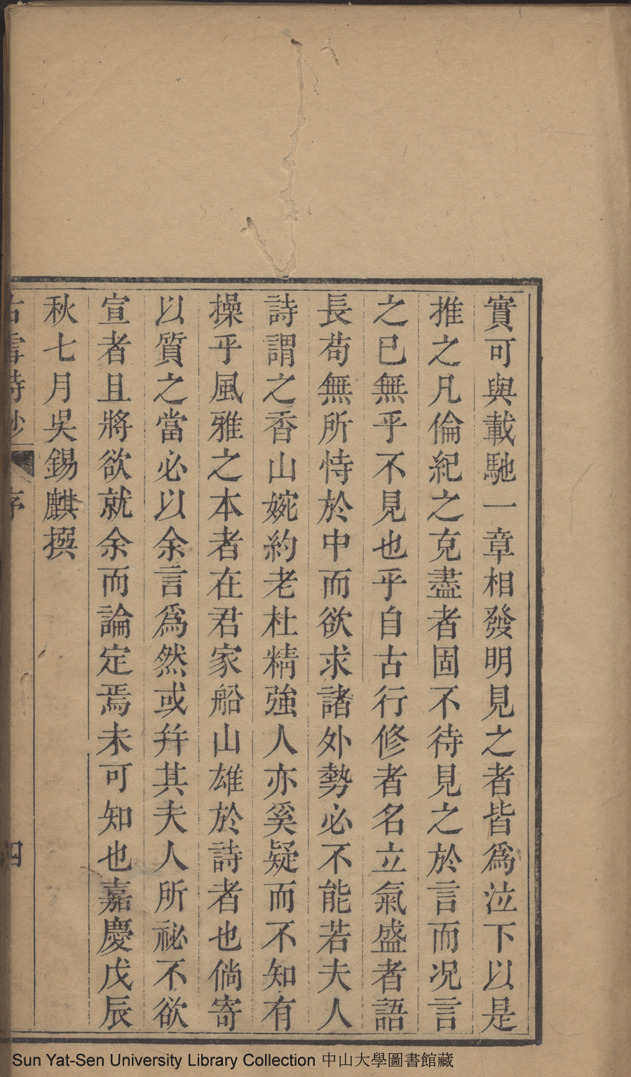 | (PRINT FRIENDLY VERSION) 古雪詩鈔:一卷, 續鈔: 一卷, 詩餘:一卷(清楊繼端撰)。清嘉慶十四年(1809)刻本 ![]() Page : 1.序.4b | click for larger image | 古雪詩鈔:一卷, 續鈔: 一卷, 詩餘:一卷(清楊繼端撰)。清嘉慶十四年(1809)刻本![]() Page : 1.序.4a | click for larger image | 古雪詩鈔:一卷, 續鈔: 一卷, 詩餘:一卷(清楊繼端撰)。清嘉慶十四年(1809)刻本![]() Page : 1.序.3b | click for larger image | 古雪詩鈔:一卷, 續鈔: 一卷, 詩餘:一卷(清楊繼端撰)。清嘉慶十四年(1809)刻本![]() Page : 1.序.3a | click for larger image | Back |