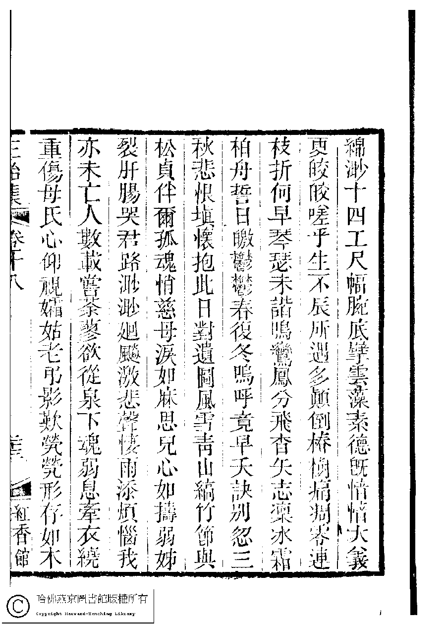 | (PRINT FRIENDLY VERSION) 國朝閨秀正始集﹕二十卷﹐附錄﹕一卷﹐補遺﹕一卷﹐又附題詞﹕一卷(清惲珠輯)。清道光十一年(1831)紅香館刻本。 ![]() Page : 18.23b | click for larger image | 國朝閨秀正始集﹕二十卷﹐附錄﹕一卷﹐補遺﹕一卷﹐又附題詞﹕一卷(清惲珠輯)。清道光十一年(1831)紅香館刻本。![]() Page : 18.23a | click for larger image | 國朝閨秀正始集﹕二十卷﹐附錄﹕一卷﹐補遺﹕一卷﹐又附題詞﹕一卷(清惲珠輯)。清道光十一年(1831)紅香館刻本。![]() Page : 18.22b | click for larger image | Back |