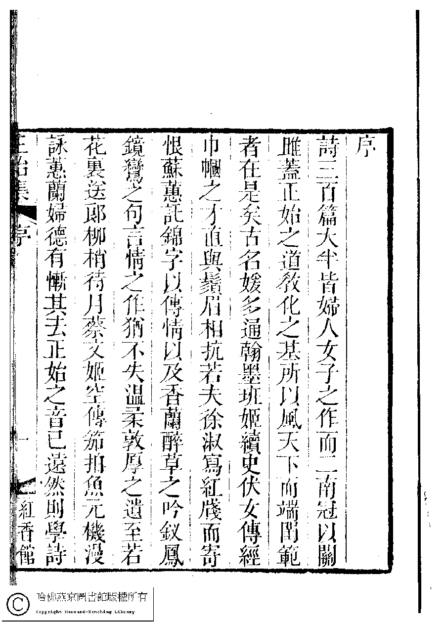 | (PRINT FRIENDLY VERSION) 國朝閨秀正始集﹕二十卷﹐附錄﹕一卷﹐補遺﹕一卷﹐又附題詞﹕一卷(清惲珠輯)。清道光十一年(1831)紅香館刻本。 ![]() Page : 序.2b | click for larger image | 國朝閨秀正始集﹕二十卷﹐附錄﹕一卷﹐補遺﹕一卷﹐又附題詞﹕一卷(清惲珠輯)。清道光十一年(1831)紅香館刻本。![]() Page : 序.2a | click for larger image | 國朝閨秀正始集﹕二十卷﹐附錄﹕一卷﹐補遺﹕一卷﹐又附題詞﹕一卷(清惲珠輯)。清道光十一年(1831)紅香館刻本。![]() Page : 序.1b | click for larger image | 國朝閨秀正始集﹕二十卷﹐附錄﹕一卷﹐補遺﹕一卷﹐又附題詞﹕一卷(清惲珠輯)。清道光十一年(1831)紅香館刻本。![]() Page : 序.1a | click for larger image | Back |