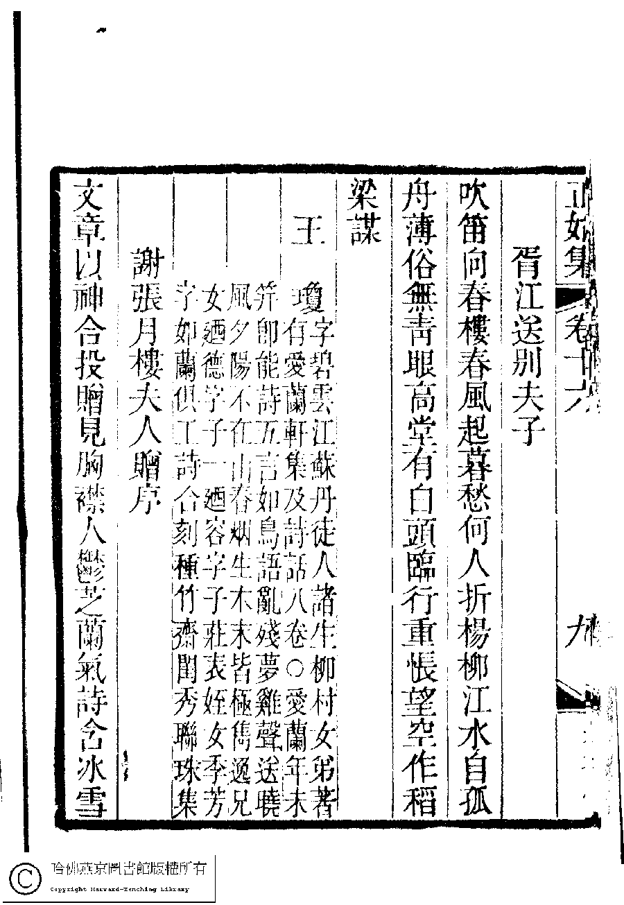 | (PRINT FRIENDLY VERSION) 國朝閨秀正始集﹕二十卷﹐附錄﹕一卷﹐補遺﹕一卷﹐又附題詞﹕一卷(清惲珠輯)。清道光十一年(1831)紅香館刻本。 ![]() Page : 16.10a | click for larger image | 國朝閨秀正始集﹕二十卷﹐附錄﹕一卷﹐補遺﹕一卷﹐又附題詞﹕一卷(清惲珠輯)。清道光十一年(1831)紅香館刻本。![]() Page : 16.9b | click for larger image | Back |