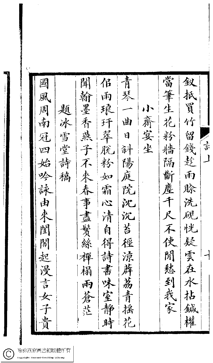 | (PRINT FRIENDLY VERSION) 芸香館遺詩﹕二卷(清那遜蘭保撰)。清同治十三年(1874)寫刻本。 ![]() Page : 1.10b | click for larger image | Back |