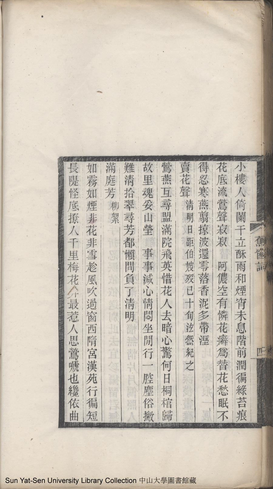| (PRINT FRIENDLY VERSION) 清足居集:一卷, 蕉窗詞:一卷(清鄧瑜撰)。光緒二十一年乙未(1895)泉唐諸氏家刻本 ![]() Page : 1.5a | click for larger image | 清足居集:一卷, 蕉窗詞:一卷(清鄧瑜撰)。光緒二十一年乙未(1895)泉唐諸氏家刻本![]() Page : 1.4b | click for larger image | Back |