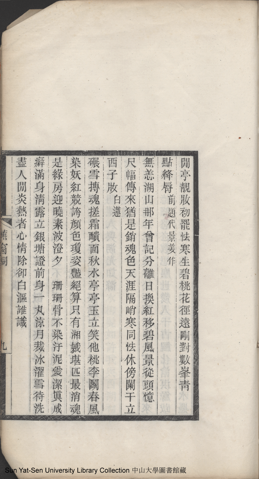 | (PRINT FRIENDLY VERSION) 清足居集:一卷, 蕉窗詞:一卷(清鄧瑜撰)。光緒二十一年乙未(1895)泉唐諸氏家刻本 ![]() Page : 1.9a | click for larger image | Back |