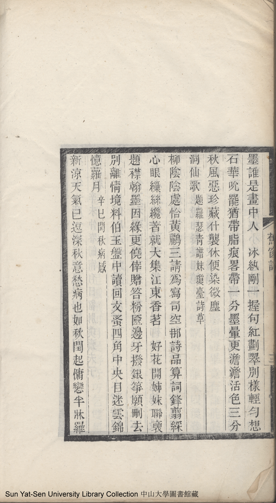 | (PRINT FRIENDLY VERSION) 清足居集:一卷, 蕉窗詞:一卷(清鄧瑜撰)。光緒二十一年乙未(1895)泉唐諸氏家刻本 ![]() Page : 1.12b | click for larger image | 清足居集:一卷, 蕉窗詞:一卷(清鄧瑜撰)。光緒二十一年乙未(1895)泉唐諸氏家刻本![]() Page : 1.12a | click for larger image | Back |