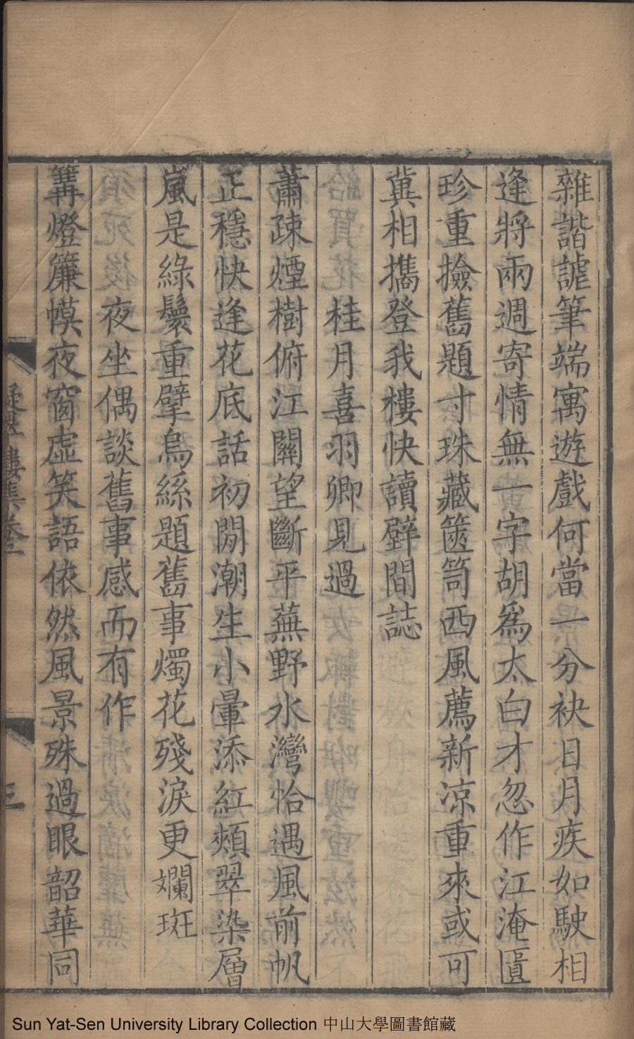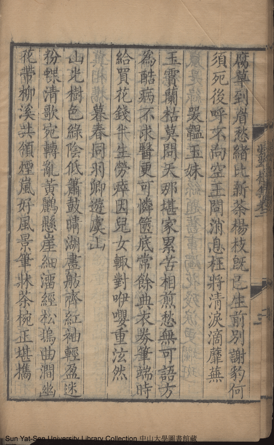 | (PRINT FRIENDLY VERSION) 凝翠樓集:四卷(清王慧撰)。康熙四十七年戊子(1708)朱氏銀槎閣精刊本 ![]() Page : 卷二3b | click for larger image | 凝翠樓集:四卷(清王慧撰)。康熙四十七年戊子(1708)朱氏銀槎閣精刊本![]() Page : 卷二3a | click for larger image | Back |