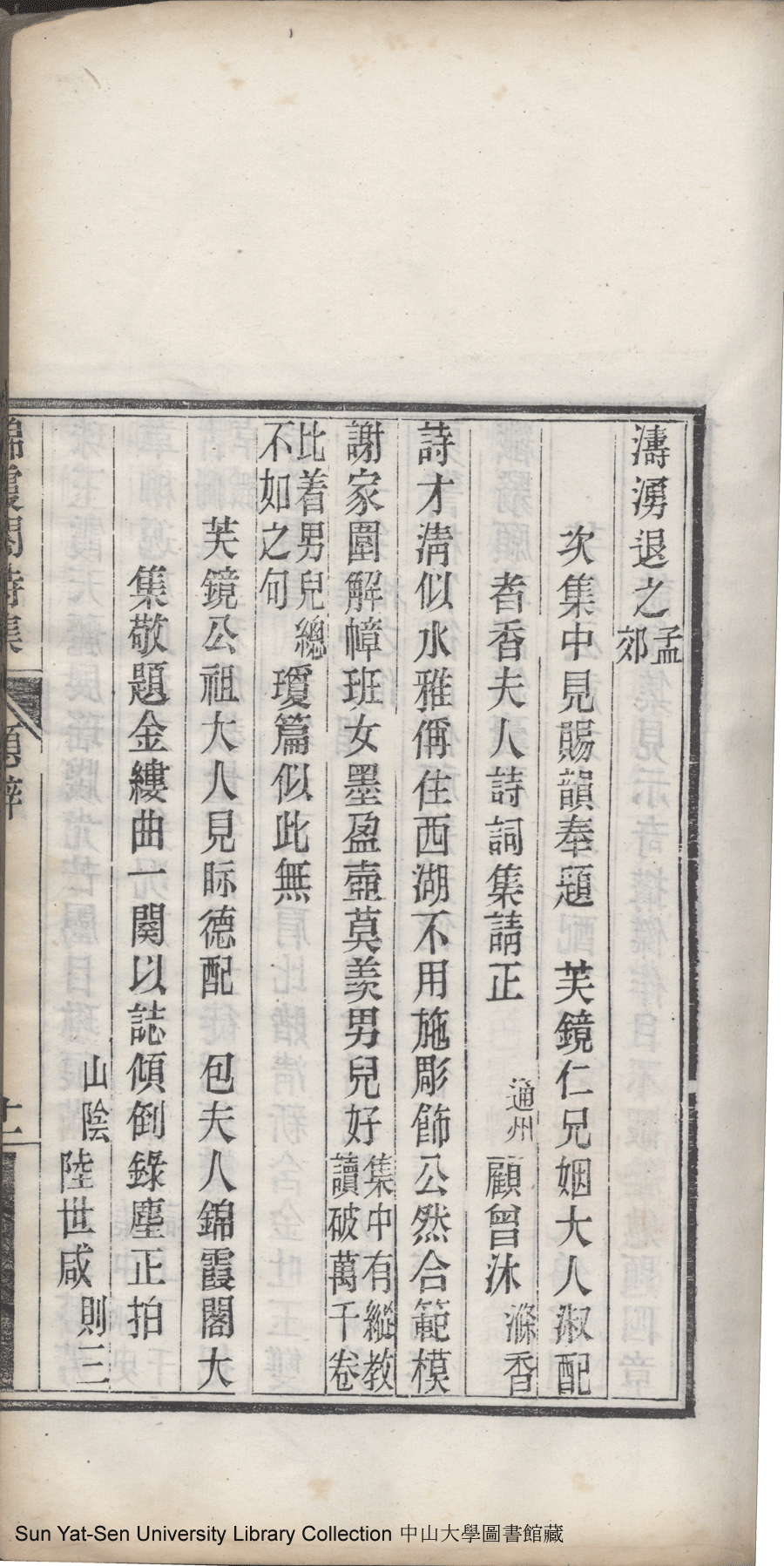 Poem [Ci ji zhong jian ci feng ti Fujing ren xiong yin da ren shu pei Zhexiang fu ren shi ci ji qing zheng]