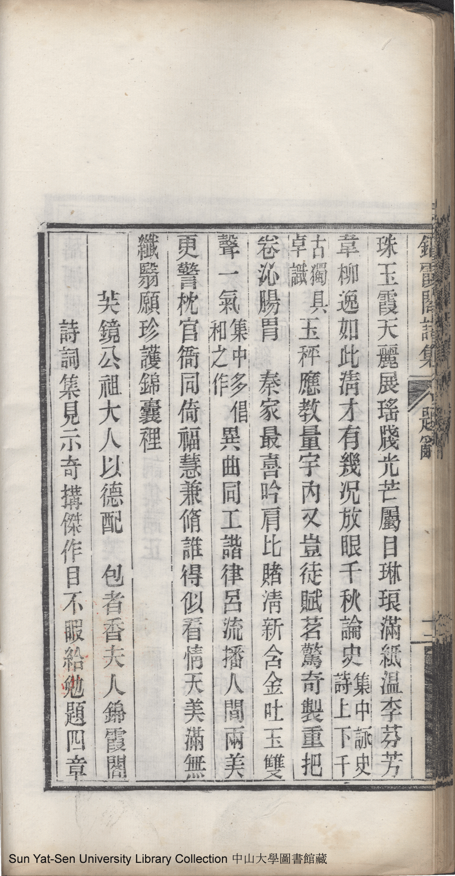 | (PRINT FRIENDLY VERSION) 錦霞閣詩集:五卷,詞集:一卷(清包蘭瑛撰)。宣統二年庚戌(1910)刊本 ![]() Page : 題辭11b | click for larger image | 錦霞閣詩集:五卷,詞集:一卷(清包蘭瑛撰)。宣統二年庚戌(1910)刊本![]() Page : 題辭11a | click for larger image | Back |