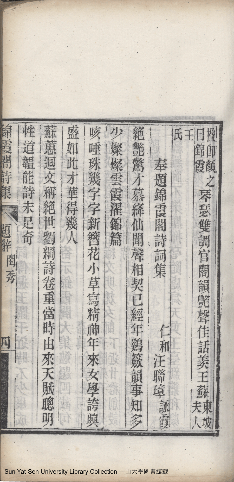 | (PRINT FRIENDLY VERSION) 錦霞閣詩集:五卷,詞集:一卷(清包蘭瑛撰)。宣統二年庚戌(1910)刊本 ![]() Page : 閨秀題辭4b | click for larger image | 錦霞閣詩集:五卷,詞集:一卷(清包蘭瑛撰)。宣統二年庚戌(1910)刊本![]() Page : 閨秀題辭4a | click for larger image | Back |