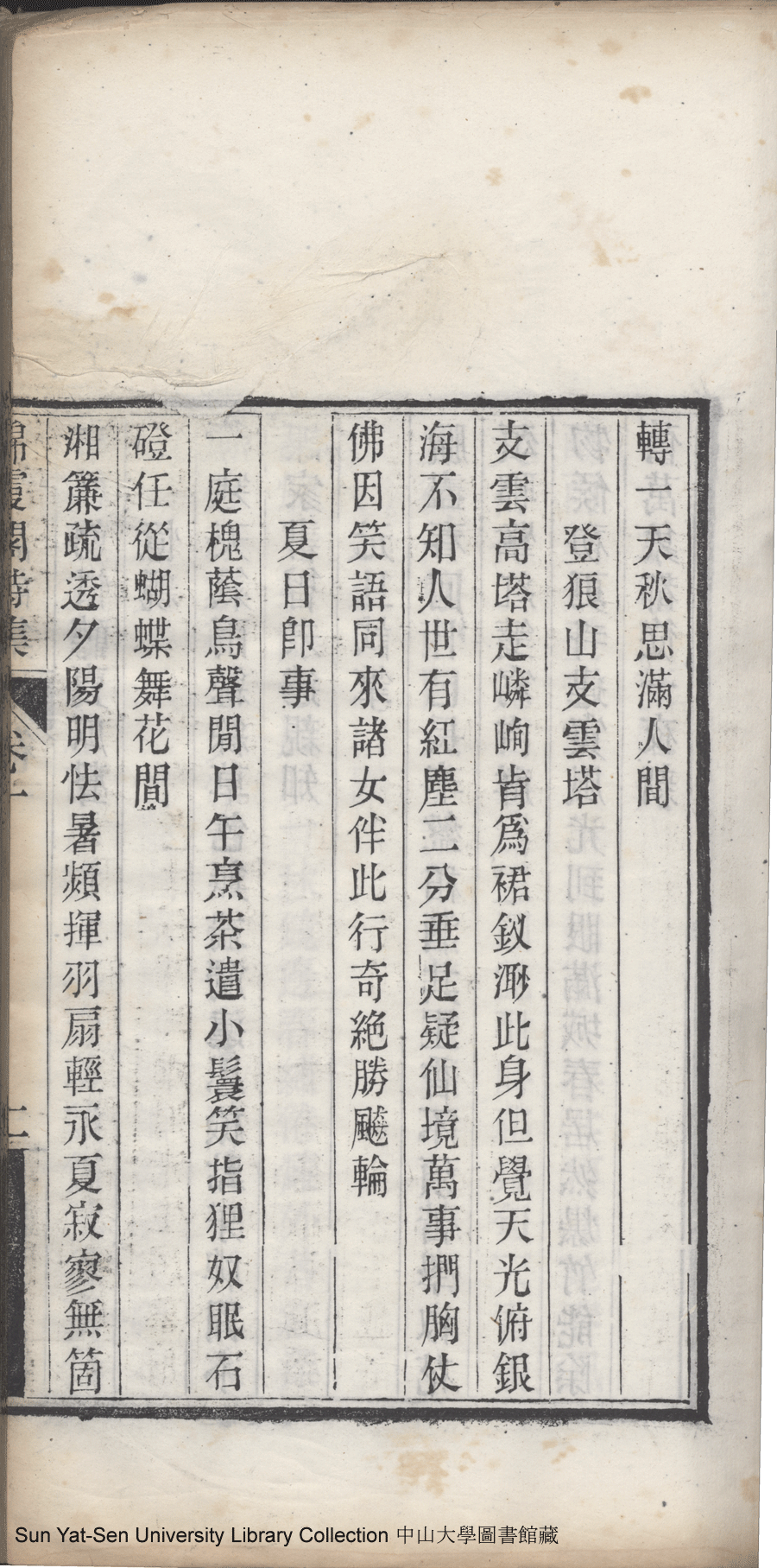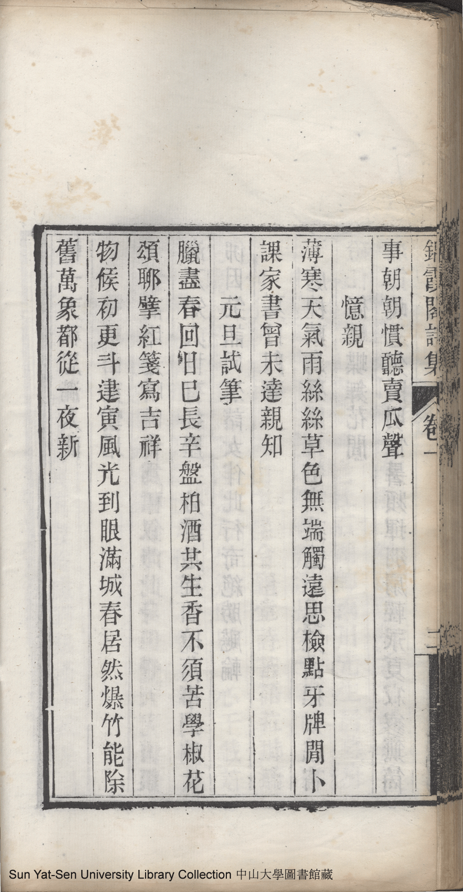 | (PRINT FRIENDLY VERSION) 錦霞閣詩集:五卷,詞集:一卷(清包蘭瑛撰)。宣統二年庚戌(1910)刊本 ![]() Page : 卷一2b | click for larger image | 錦霞閣詩集:五卷,詞集:一卷(清包蘭瑛撰)。宣統二年庚戌(1910)刊本![]() Page : 卷一2a | click for larger image | Back |