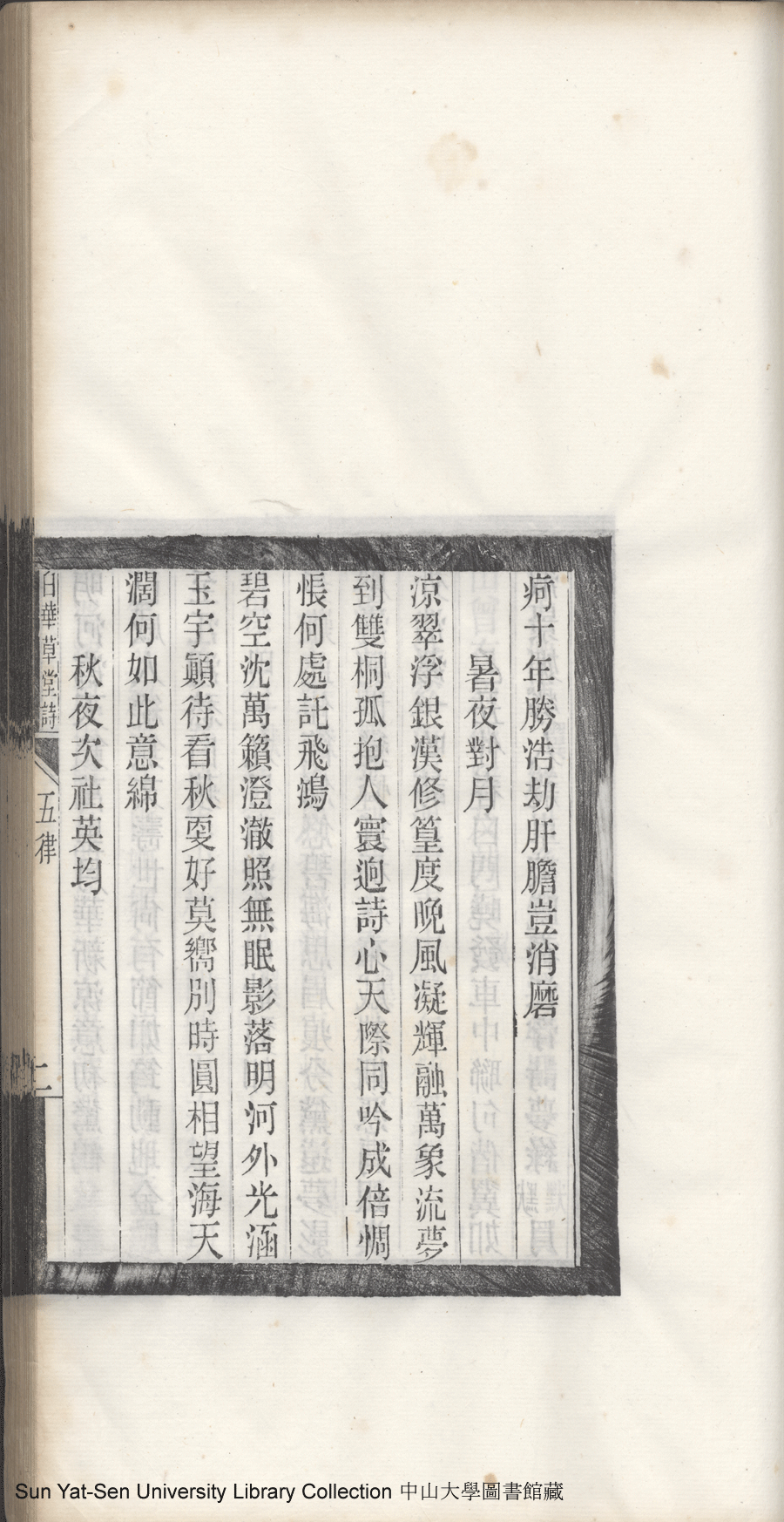 | (PRINT FRIENDLY VERSION) 白華草堂詩:六卷,玉尺樓詩:一卷(清張昭漢撰)。民國二十三年(1934)刊本 ![]() Page : 五律2a | click for larger image | Back |