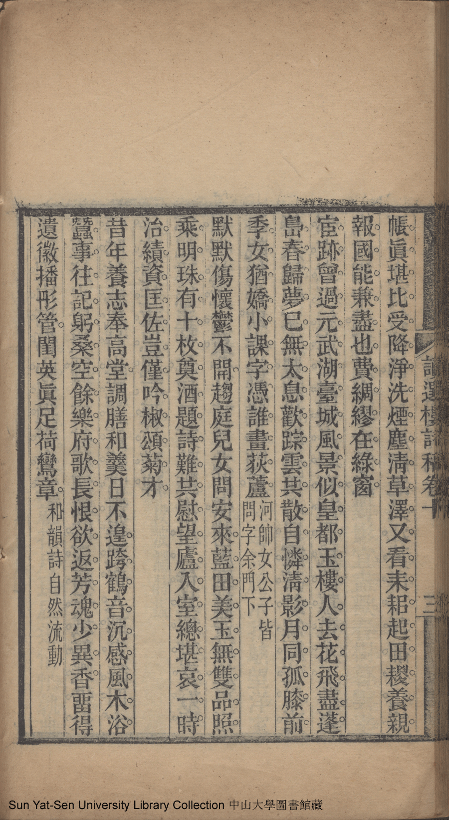 | (PRINT FRIENDLY VERSION) 讀選樓詩稿: 十卷(清王采蘋撰)。光緒甲午年(1894)吳縣朱氏槐盧翻刻本 ![]() Page : 卷十3b | click for larger image | 讀選樓詩稿: 十卷(清王采蘋撰)。光緒甲午年(1894)吳縣朱氏槐盧翻刻本![]() Page : 卷十3a | click for larger image | 讀選樓詩稿: 十卷(清王采蘋撰)。光緒甲午年(1894)吳縣朱氏槐盧翻刻本![]() Page : 卷十2b | click for larger image | Back |