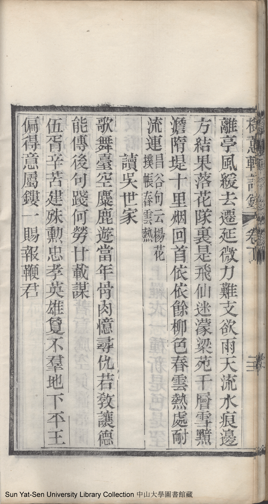 | (PRINT FRIENDLY VERSION) 樹蕙軒詩鈔: 三卷(清虞友蘭撰)。晚清(1850-1911)重刊本 ![]() Page : 卷下21b | click for larger image | 樹蕙軒詩鈔: 三卷(清虞友蘭撰)。晚清(1850-1911)重刊本![]() Page : 卷下21a | click for larger image | 樹蕙軒詩鈔: 三卷(清虞友蘭撰)。晚清(1850-1911)重刊本![]() Page : 卷下20b | click for larger image | Back |