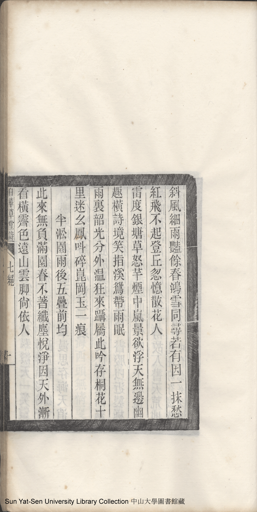 | (PRINT FRIENDLY VERSION) 白華草堂詩:六卷,玉尺樓詩:一卷(清張昭漢撰)。民國二十三年(1934)刊本 ![]() Page : 七絕10a | click for larger image | 白華草堂詩:六卷,玉尺樓詩:一卷(清張昭漢撰)。民國二十三年(1934)刊本![]() Page : 七絕9b | click for larger image | Back |