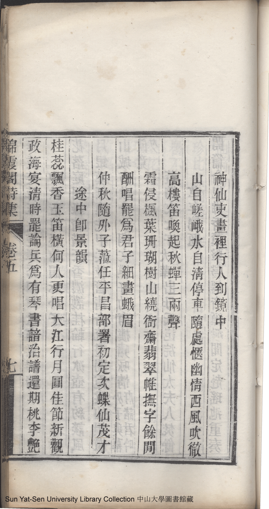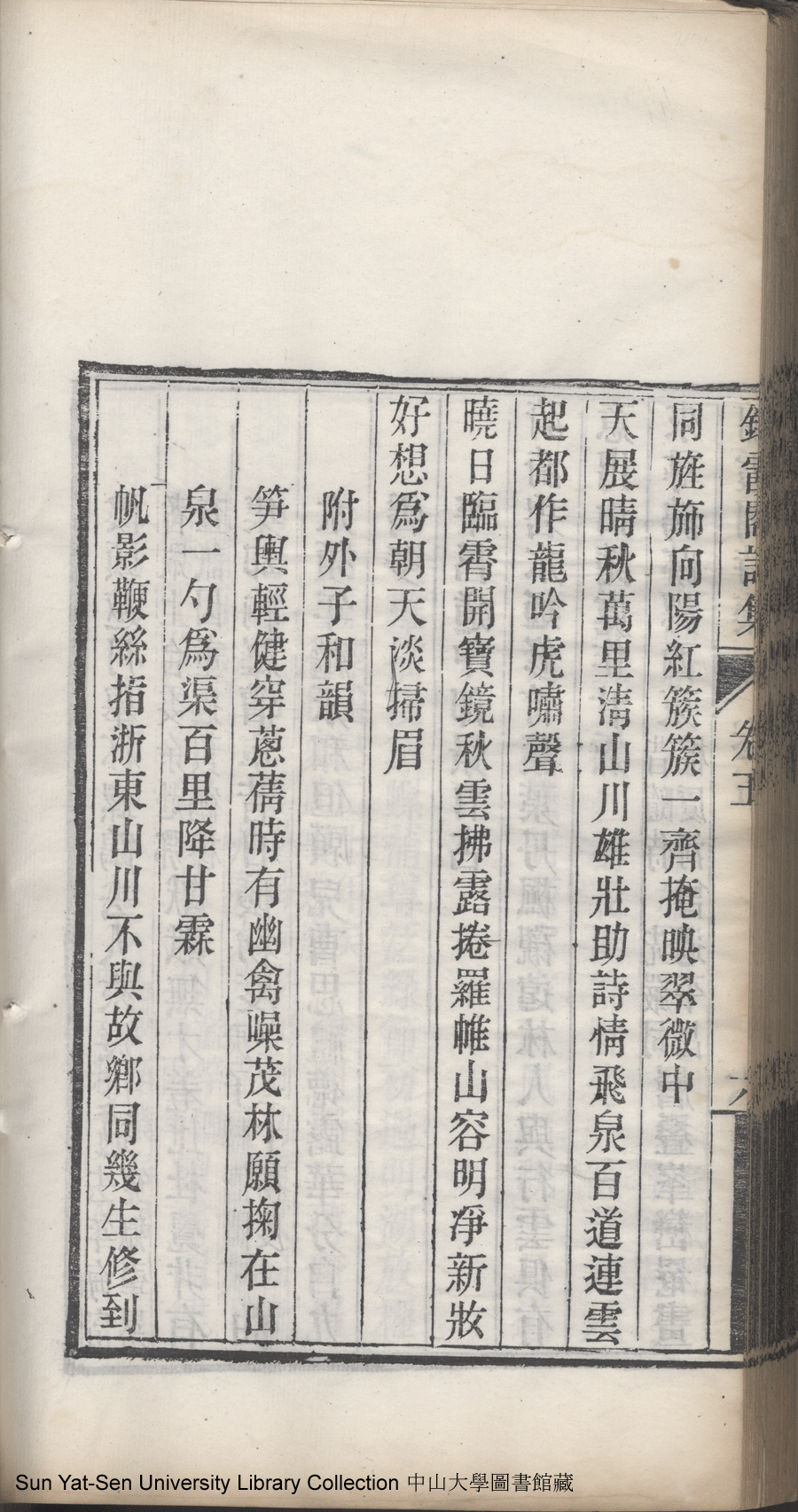 | (PRINT FRIENDLY VERSION) 錦霞閣詩集:五卷,詞集:一卷(清包蘭瑛撰)。宣統二年庚戌(1910)刊本 ![]() Page : 卷五7a | click for larger image | 錦霞閣詩集:五卷,詞集:一卷(清包蘭瑛撰)。宣統二年庚戌(1910)刊本![]() Page : 卷五6b | click for larger image | Back |